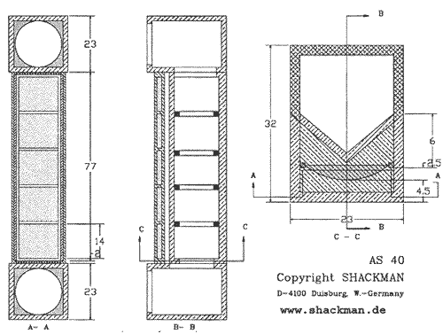 Shackman AS40, reviewed and tested in ELEKTOR 1990, optimized quasi D'Appolito principle with 5 ESL/Barker Code