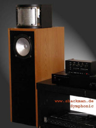 The Symphonic is closed box using a two-way hybrid combination. The bass driver is the well known Podszus-Görlich TT200/25, which is still available in its original version. Das enclosure is a sand-filled sandwich construction, which results in an incredible clean bass reproduction.